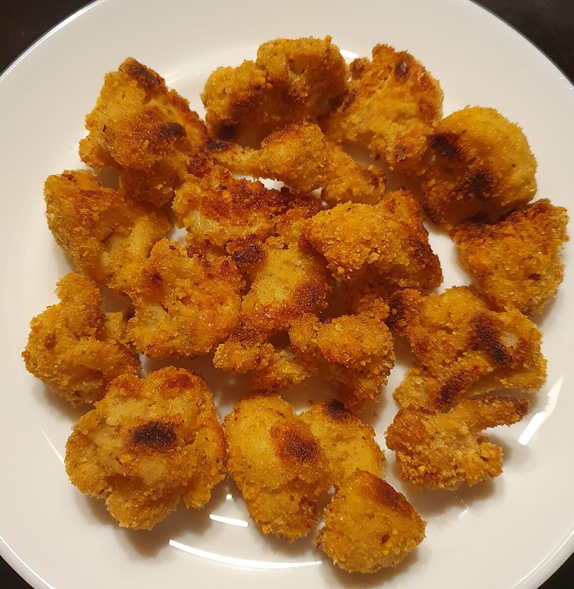 Разделить на кусочки, отварить ,затем обмакнуть каждый кусочек в сухари , взбить яйца со ( сливками , йогуртом , сметаной , что можно ) , добавить соль и специи по вкусу или те что можно, если ваша диета разрешает добавить тертого сыра , залить этой смесью капусту и в духовку или мульти печку 175* на 15-20 минут