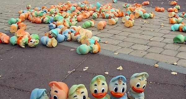 В Виннице неизвестные разбросали тысячи резиновых утят на детской площадке