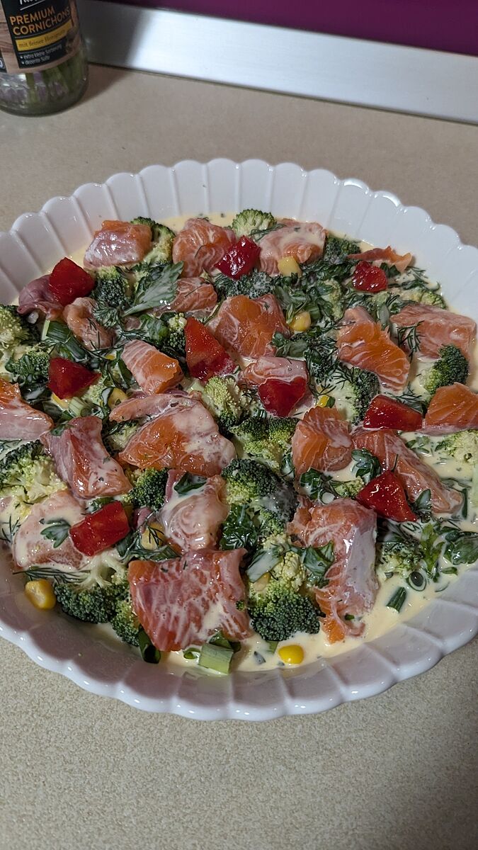 Я трохи змінила - залила не вершками, а сметаною, бо хотілось неведичкої кислинки.