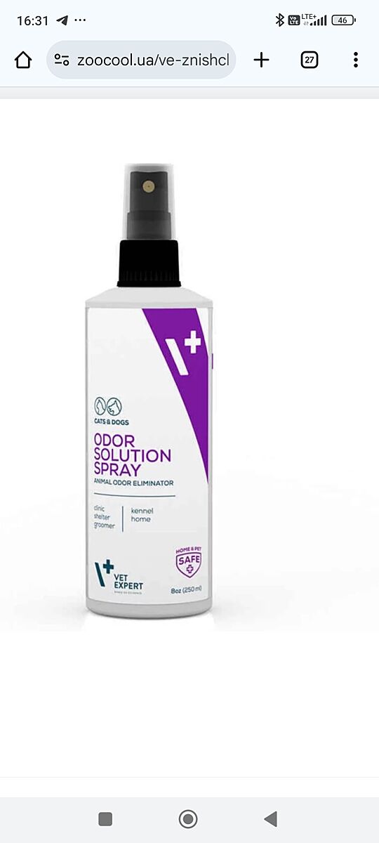 И есть спрей для отпугивания, и есть для того что б отмыть запах , вот такой у меня спрей если случается авария, у нас мальчик не любит грязных лотков, поэтому бывают аварии, а давно она у вас?