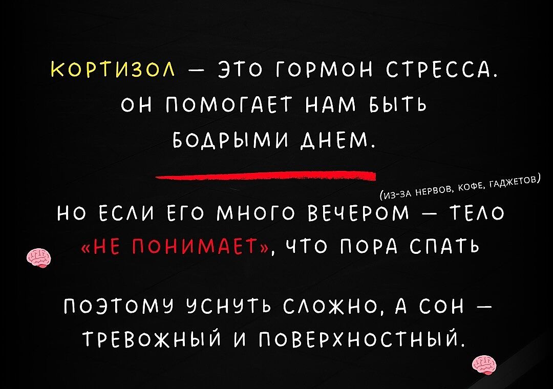 Бо тоді збивається ритм. Вночі прокидається і виробляється кортизол.