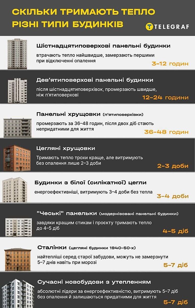 Вот картинка про то, сколько держат тепло разные типы домов.