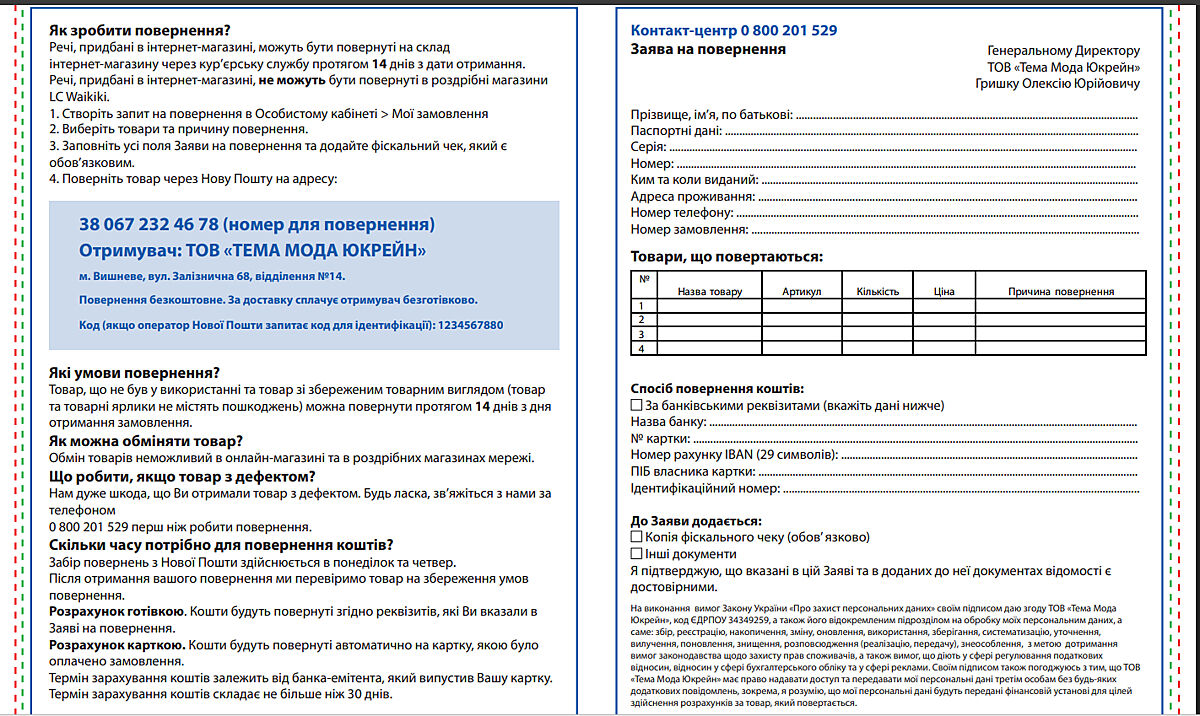 Мало того, что на сайте форма на возврат требует ИНН и данные банковской карты с CVV. Так еще и в печатной форме, которую тоже необходимо приложить к товару, требуются паспортные данные с согласием на передачу третьим лицам) Это что, сбор личных данных?