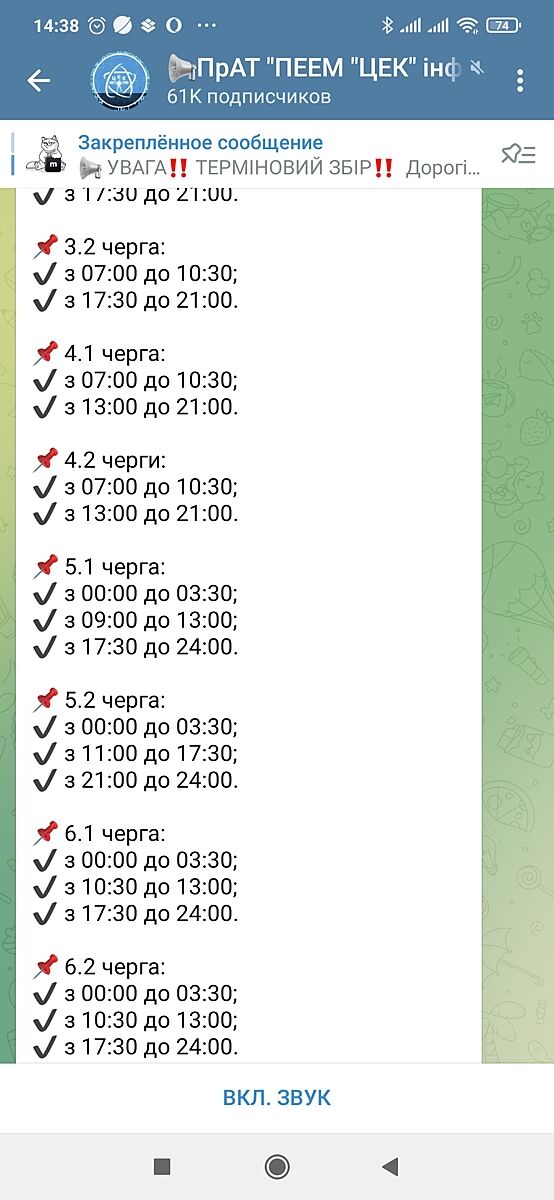 Не Днепр, но задолбало, что графики меняют по 10 раз в день. Иногда сначала выключат, а следом новый график выкладывают. Но есть газ, вода и отопление, так что грех жаловаться