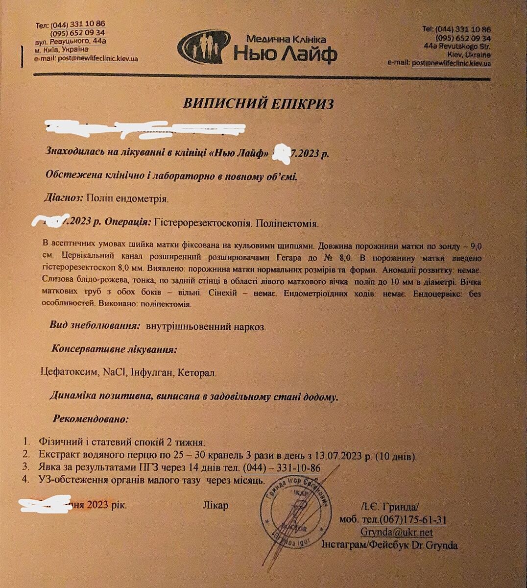 , по темному, бо без світла, тільки шо свою виписку знайшла. Лікар- там написано, саме його раджу, а в клініках він тоді у декількох працював, у різні дні. Я довірилась йому, по рекомендації свого гінеколога, і інших не шукала. Але, як дівчата тут кажуть, є гарні лікарі і інші. І дешевше. Операція нескладна, нестрашна, як наважитесь - впевнена шо у вас буде все рівно і спокійно.