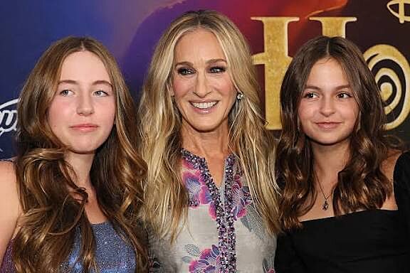Сара Джессика Паркер как восковая. Нельзя было ее нормально накрасить? Девочкам повезло - подбородок папин. А вот лбы мамины. Мальчик больше на Джессику похож. Симпатичный)