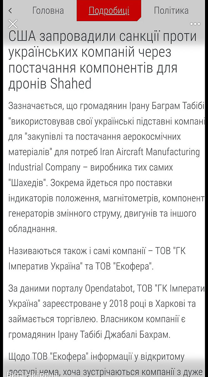 А звідти якісь “підприємці” підсовували Ірану нутрощі для дронів,