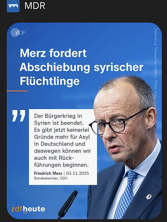 Обсуждается возвращение назад. Пока ещё нет механизма, но Мерц как раз считает, что они должны возвращаться в Сирию и говорит это прямо. Но есть конфликт - Министр иностранных дел, считает что в Сирии ещё не достаточно безопасно. Планируется ряд мероприятий и обсуждений.