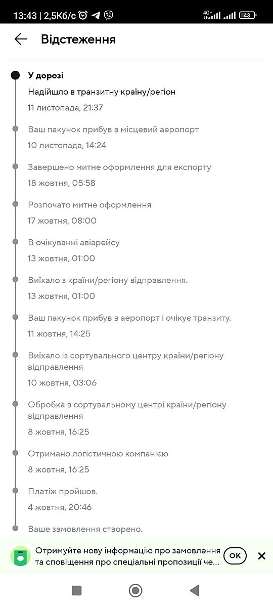 В мене влітку в аеропорту в Китаї посилка 4 тижні була, думала уже всьо..бо зазвичай швидко покидає той пункт🙄але таки відправили звідти.