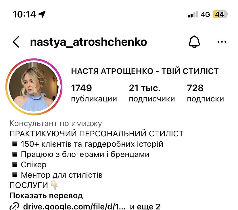 Я не хочу дивитись інстаграм або ютуб та надихатися тенденціями, бо з цього виходить якийсь цирк. Я хочу по-людськи. Приїхати на консультацію, сплатити гроші, щоб зі мною декілька днів поспілкувалися, подивилися на мою поставу, жестикуляцію, ходу, міміку та враховуючи всі ці фактори підібрали мені стиль одягу та загальний образ, макіяж, зачіску. Хто надає такі послуги? Буду вдячна за контакти.