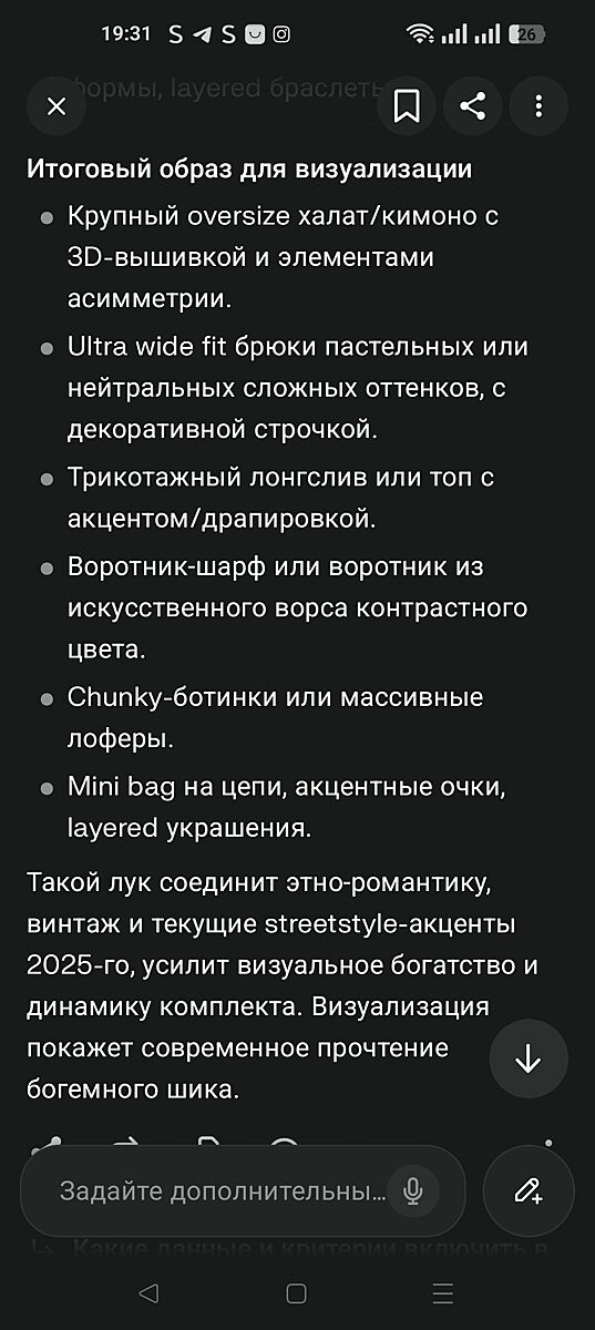 Так одеваться мне предлагает ИИ на основе моей фигуры и анализа гардероба, предпочтений. Мол, вот тебе актуальные версии для сезона 2025-2026.