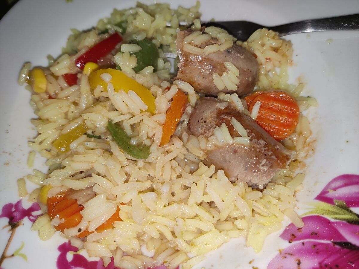 Отбивные с гречкой, мясо в гриле, рис с овощами и телятиной, пирог с яблоками. Завтра еще сделаю пиццу и поеду гулять с подругами