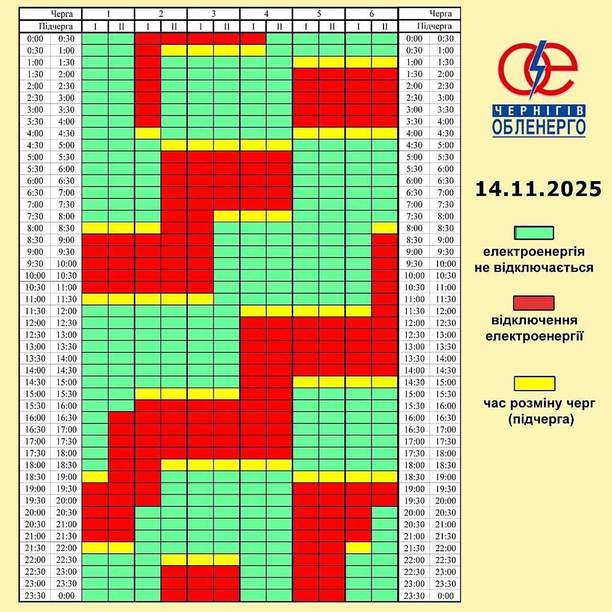 Чернигов. На выходных было немного получше. Но в будний день стабильно нет света по 7 часов подряд. И проблемы со светом у нас с сентября.