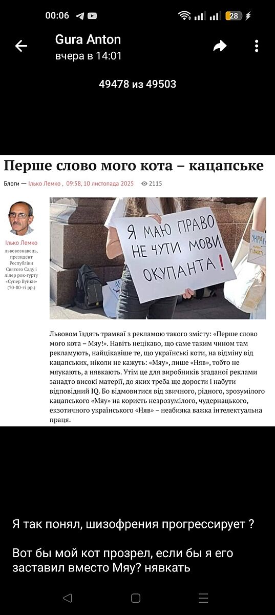 13.00 Клеймение позором русскоязычных.Самые смелые в реальности,трусоватые в интернете.