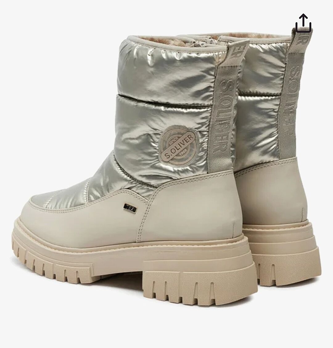 Я відштовхуюся від того, що людина взувала минулої зими. Приблизно, плюс-мінус, модель схожа і дитині то подобалося. І так, хоче блискуче, бо ще й куртку і шапку має в кольорі металік)