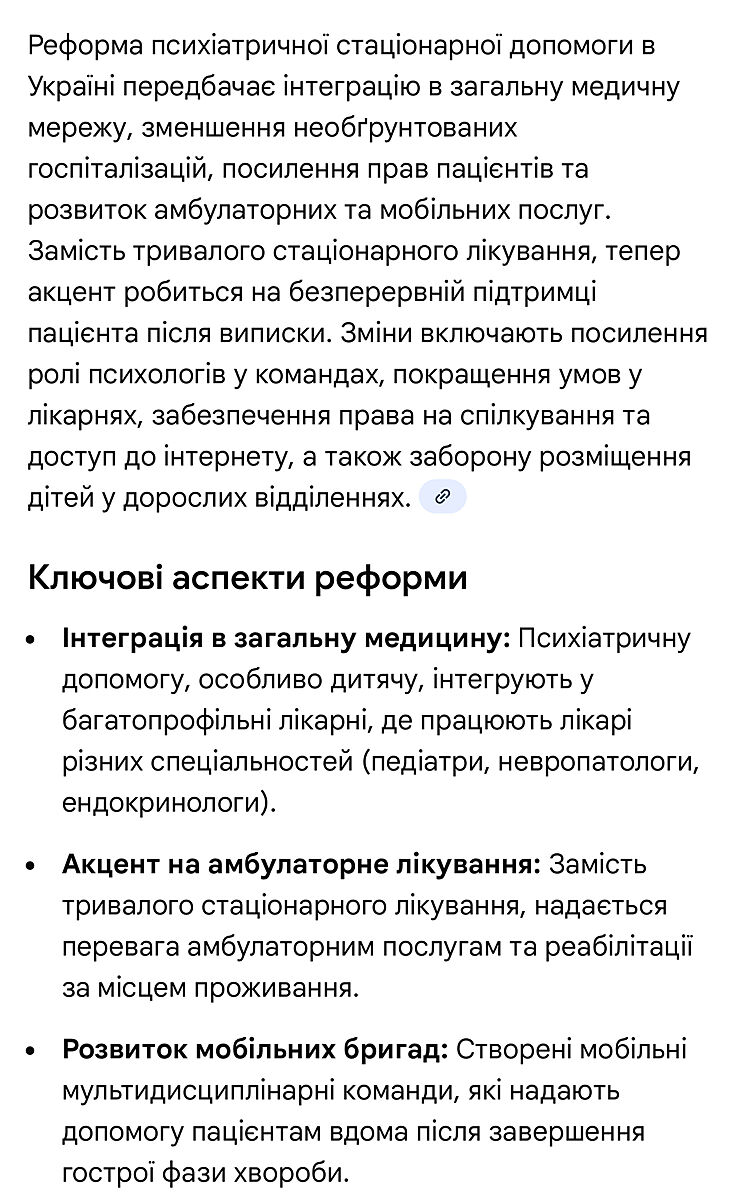 В нас нормальні лікарні в Києві. Раніше лікування було без проблем. Зараз не зважаючи на психіатричний діагноз, їх кидають на фронт, пишуть здоровий. Я не тільки не можу покласти, лікарня відмовляє, я через тцк людину не довезу до столиці. Ви не уявляєте що це таке.