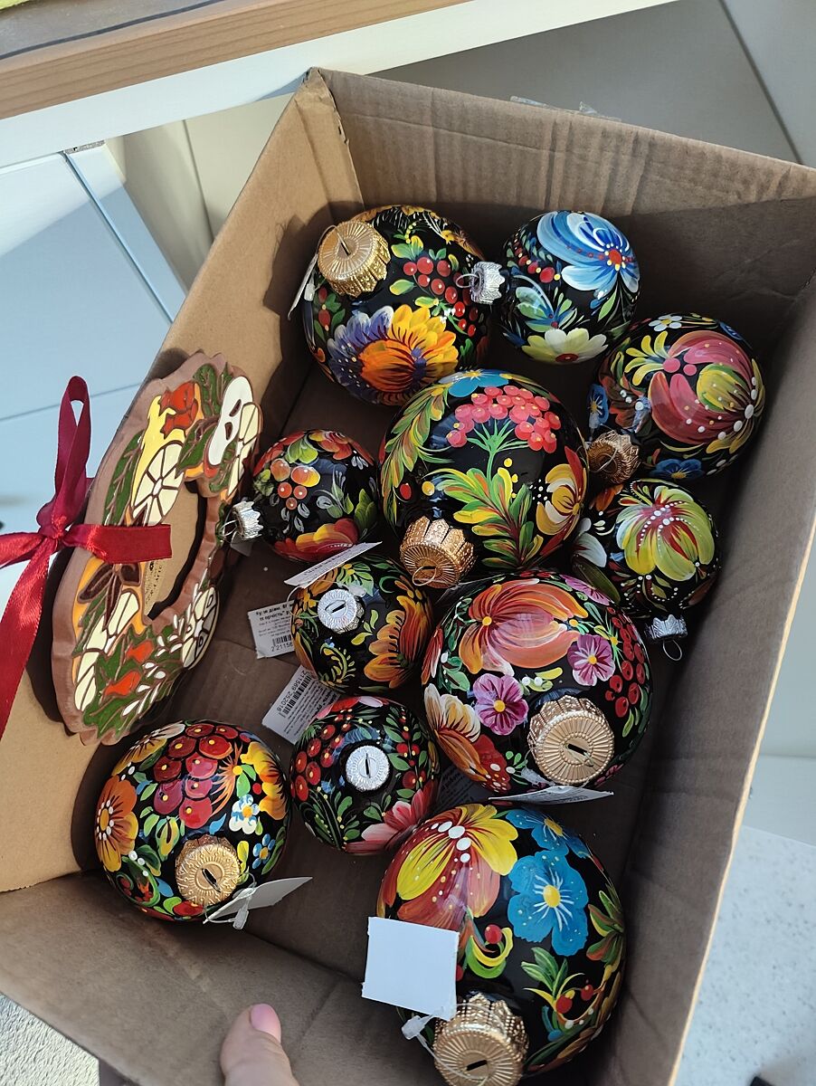 В прошлом году накупила себе шаров с петриковской росписью, хотела в этом году дополнить коллекцию. Шаров не нашла, видимо не сделали, зато нашла вот это. Мне кажется или они реально страшные?