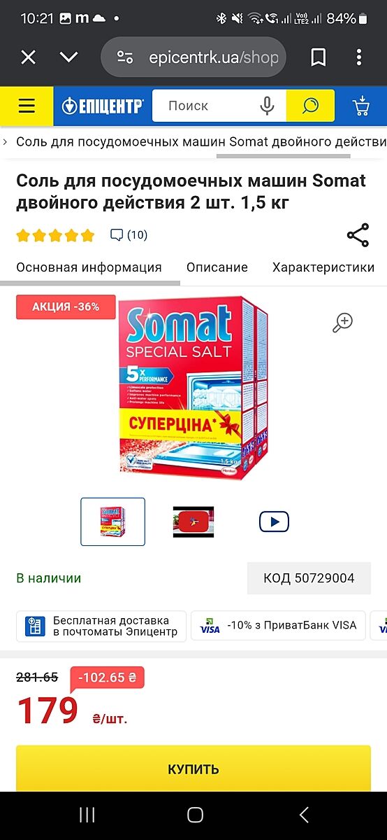 Дякую, це від жорсткості води залежить, я останній раз брала 5,5 років тому смаме сомат, от зараз закінчився запас, але там ціна була 40 грн+/- за пачку. Я засипають тоді, коли індикатор світиться.