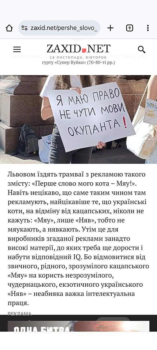 То російське вухо чує мʼяв, а справжні українці чують няв. А що каже котик насправді - то знає лише котик.