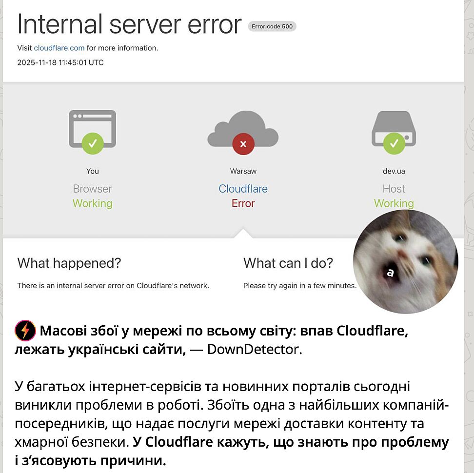 Глобальний збій системи по всьому світу, в мене деякі теж не працюють, Міст Китай прислали повідомлення з причиною.