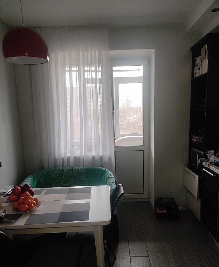 Тюль був до ремонту - мені заважав. Можливо не дуже вдалий вибір був, але в оновленій кухні я від нього відмовилася. Я люблю дивитися у вікно і взагалі щоб було більше повітря на кухні.