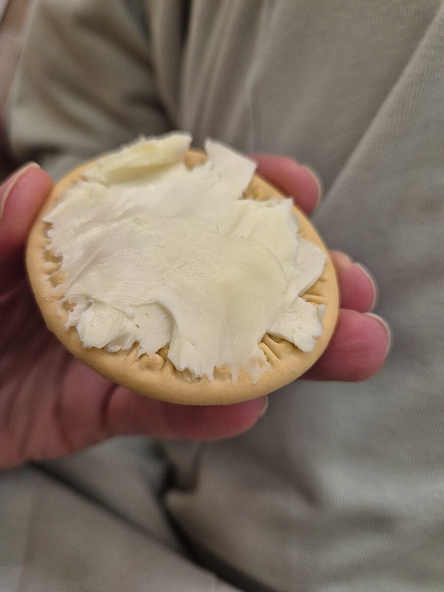 Я обожаю печенье Мария с маслом и чаем, вот, жую