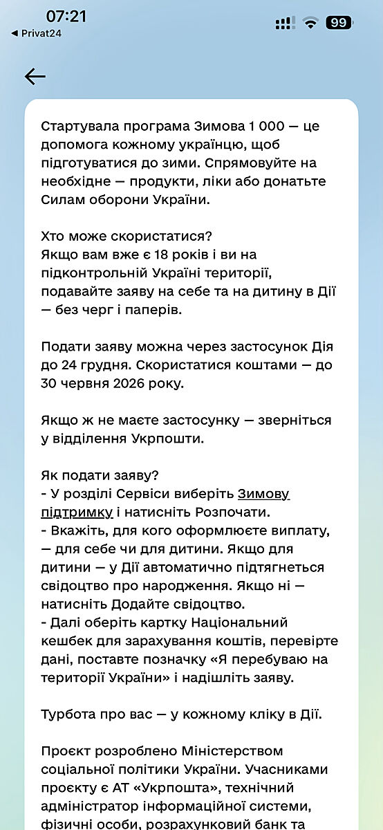 Несправедливо, что украинцам не платят пособие как в Германии. Они там живут со светом и в безопасности, ещё и пособие. А у нас заработать тяжело без света и от недосыпа, и тысяча гривень раз в два года.