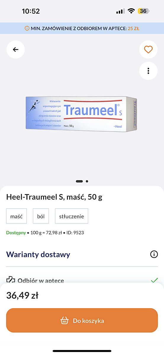 Замовила знову на аллегро. Доз в мене не загружався, на Мелісі дорожче. Замовлення: 1 уп таблетки траумель, 2 шт крем тюбик траумель, 1 уп від алергії - за все 880 грн з доставкою по Польщі (з застосуванням купону на знижку від алегро на 20 зл). Можливо, комусь згодиться. В Києві траумель від 550 грн за 1 шт