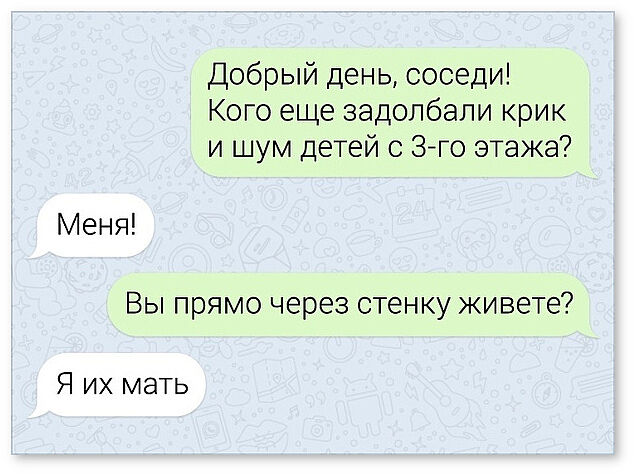 постійно чую сусідських дітей по всій квартирі в будь який час дня і ночі. але шо з цим зробити? нічого.