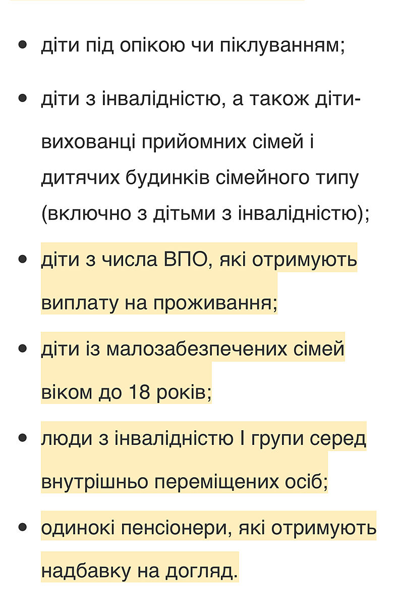 Тысячу гривен украинцы смогут использовать на коммунальные услуги, лекарства, продукты украинского производства, почтовые услуги, книги, благотворительность и донаты Силам обороны. 6 500 гривен от государства можно потратить на одежду, обувь лекарства и витамины.