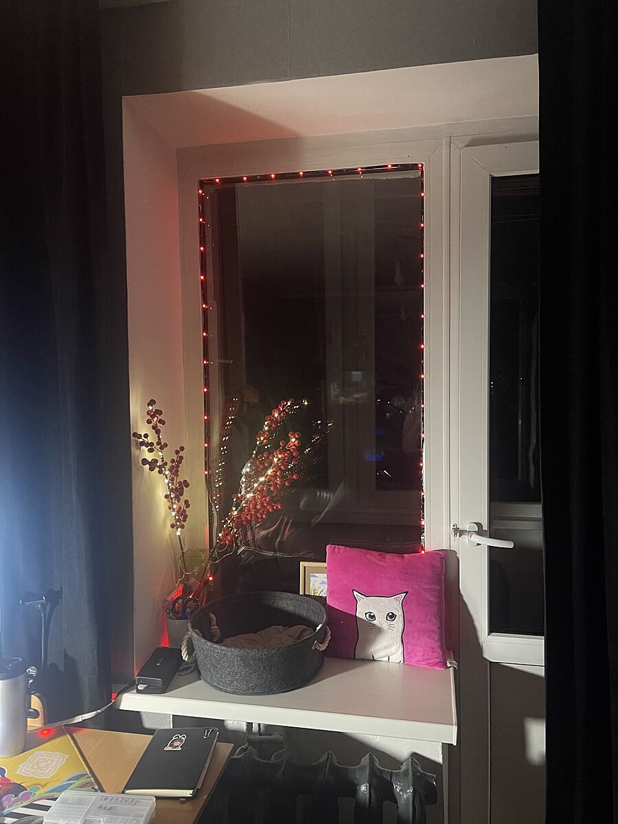 Та їх купа різних. Гірлянда штора з Алі, але ще не повісила. Гілки з Аврори, лед стрічка не памʼятаю вже з якогось інтернет магазину чи розетка, чи типу того. В люстрах акумуляторні лампочки. На ялинці теж наче з Алі гірлянда. Лед стрічка на вікні і по всій одній кімнаті, на пульті з різними режимами. В коридорі і тамбурі лед лампи з датчиками руху.