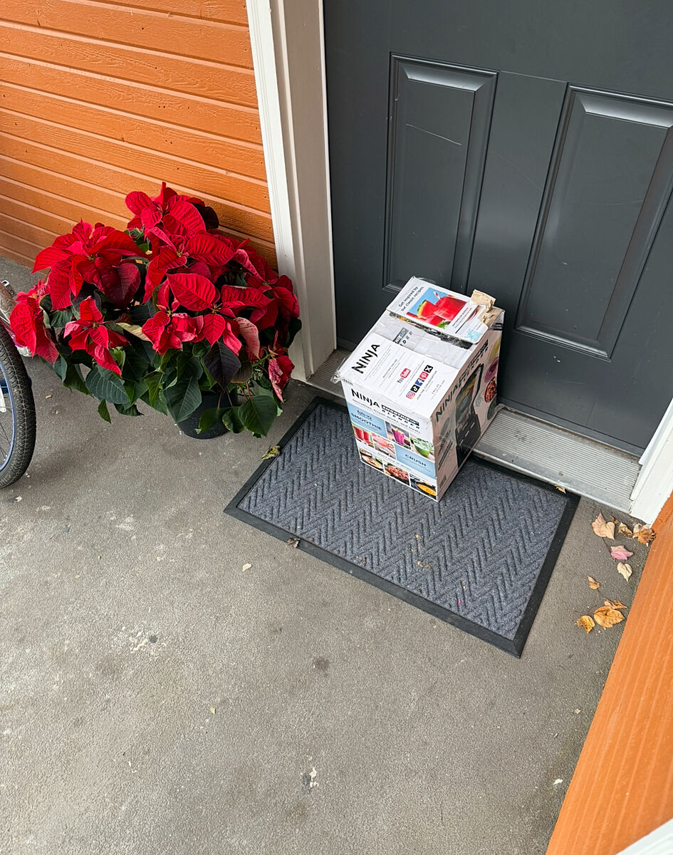 Сміття регулярно під дверима + вічні здорові коробки. Ось це тиждень стояло збоку, сьогодні вона поставила в мої горщики. Я переставила.