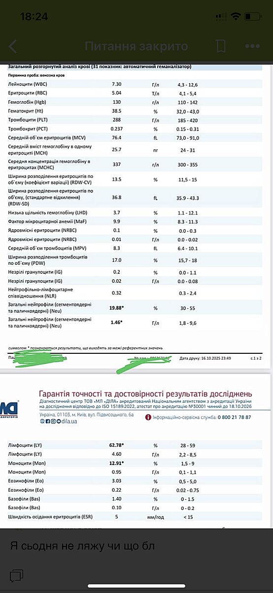 Вранці просто ходили здавати . Щоб перевірити базофіли. Пройшло 4 тижні після хвороби і 5 тижнів після ваксі грипу щеплення. Жду.