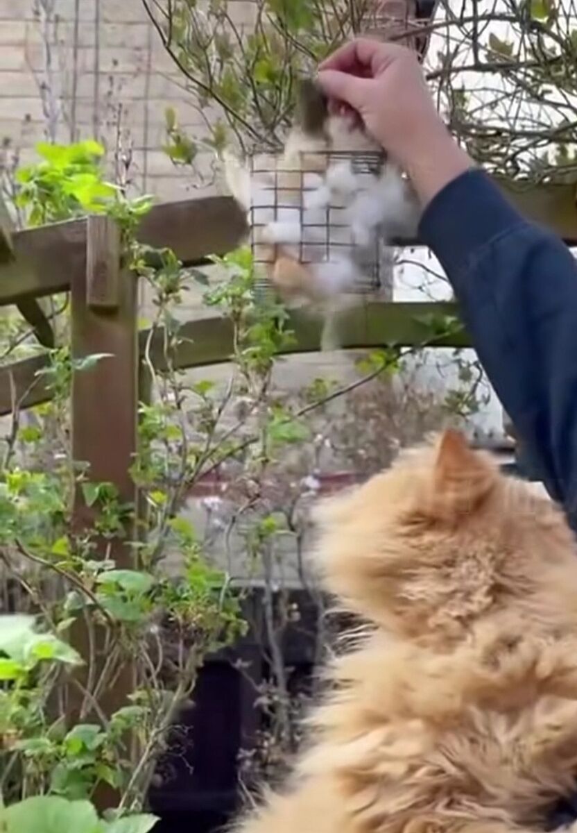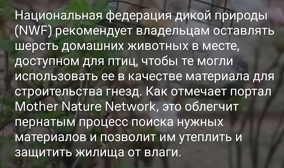 У кого пушистые кошки, можете оставлять шерсть для птиц