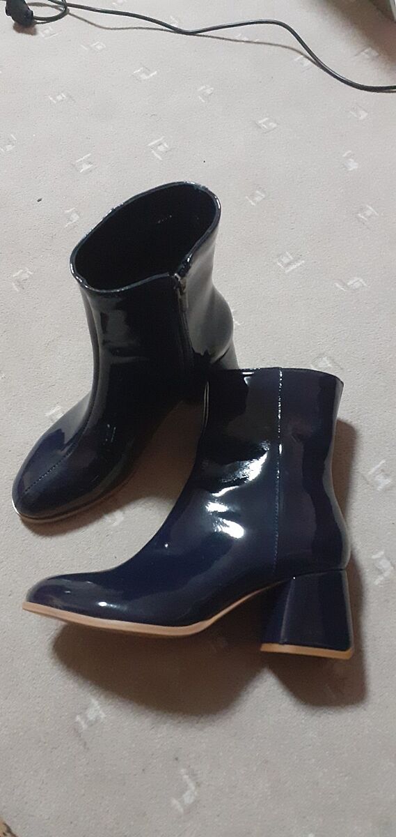 замовила ботильйони такі, як хотіла, із синьої лакованої шкіри.