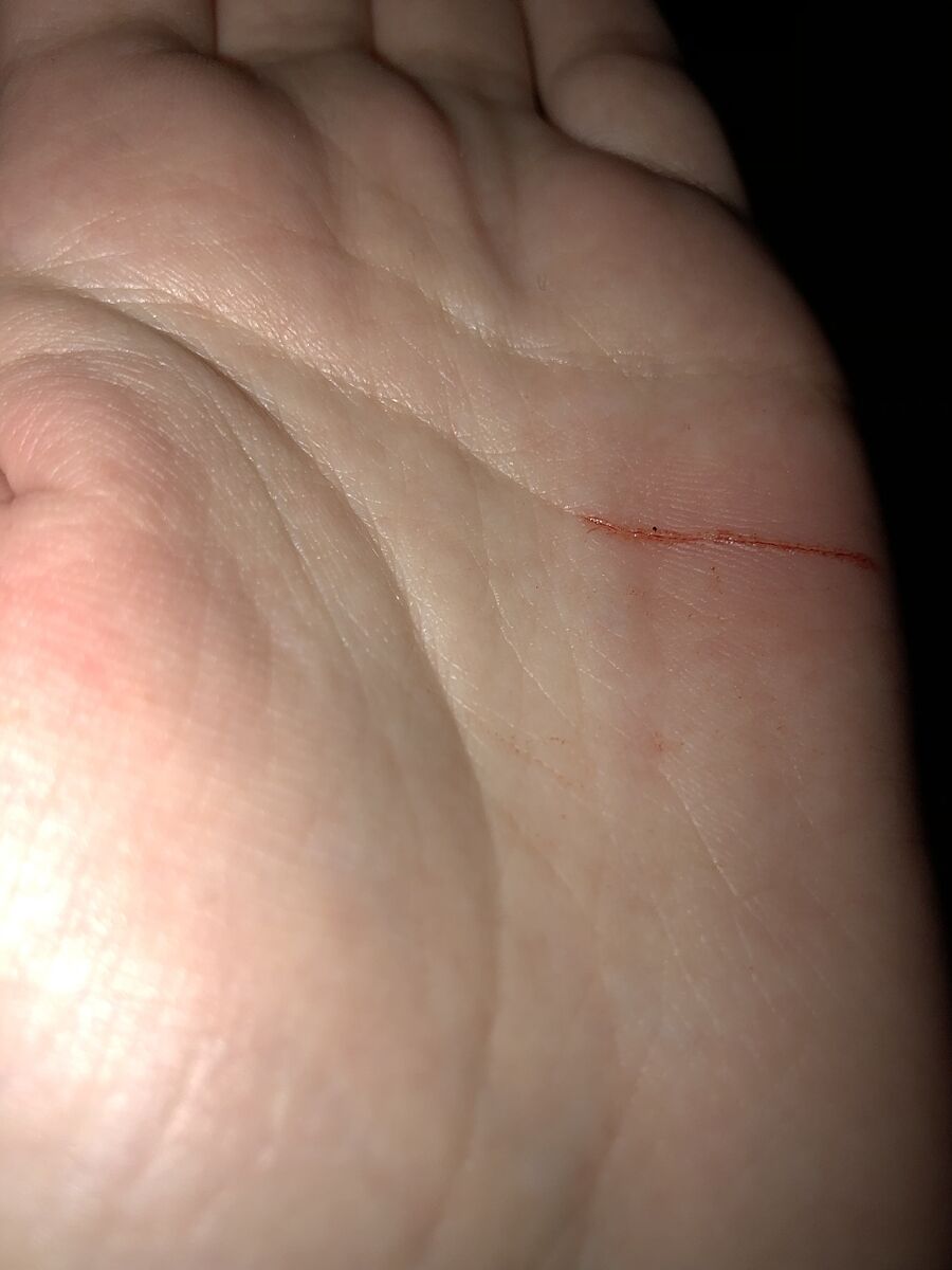 Я, конечно, не суеверная и не особо верю в эту всю хиромантию. Но сейчас немного задумалась, посмотрев на руку и куда именно она мне попала…четко по линии жизни…