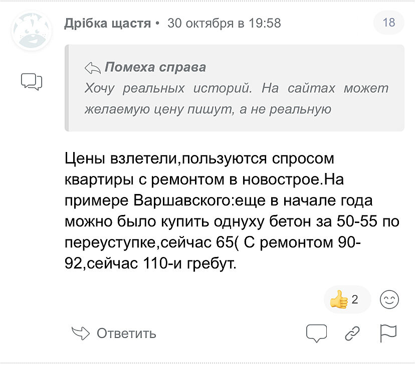 Цены взлетели,пользуются спросом квартиры с ремонтом в новострое.На примере Варшавского:еще в начале года можно было купить однуху бетон за 50-55 по переуступке,сейчас 65( С ремонтом 90-92,сейчас 110-и гребут.