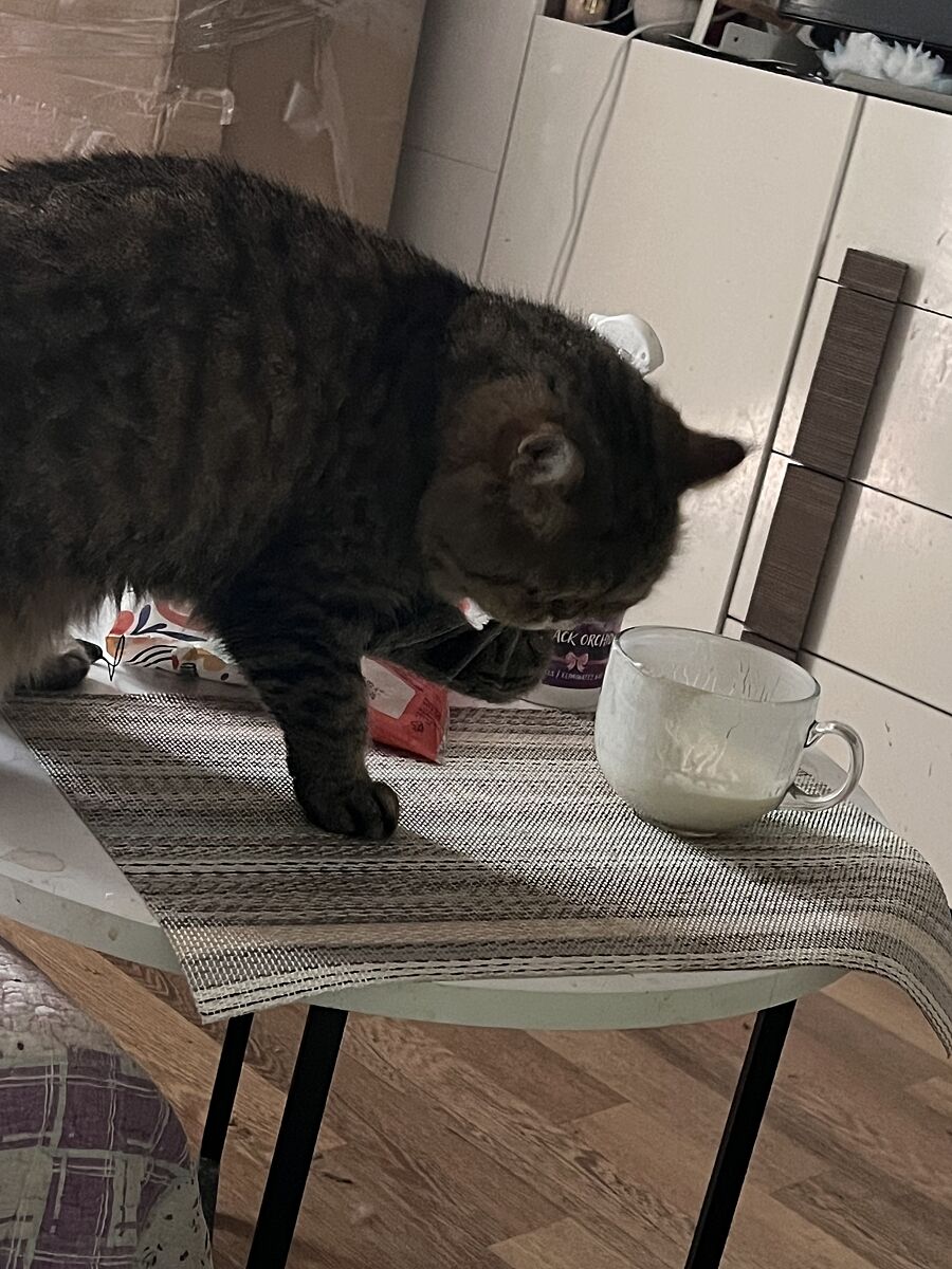 У вас сознательный кот ) А она не любит ни молоко, ни кефир. Иногда густой как простокваша кефир Ферма пила, но он исчез. Не повезло кошке с вкусовыми привычками, да