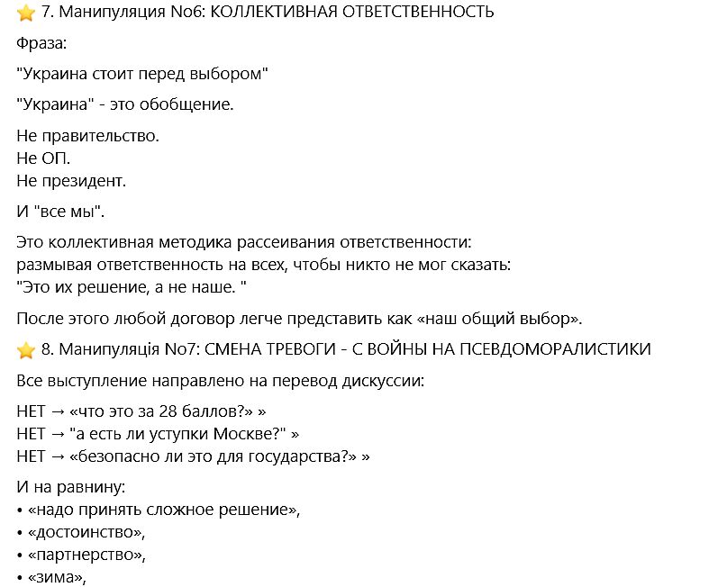 когда сложное рациональное содержание (28 баллов, термины США/Трампа, фактические уступки) заменяется эмоциональной категорией, которую никто не может отрицать.
