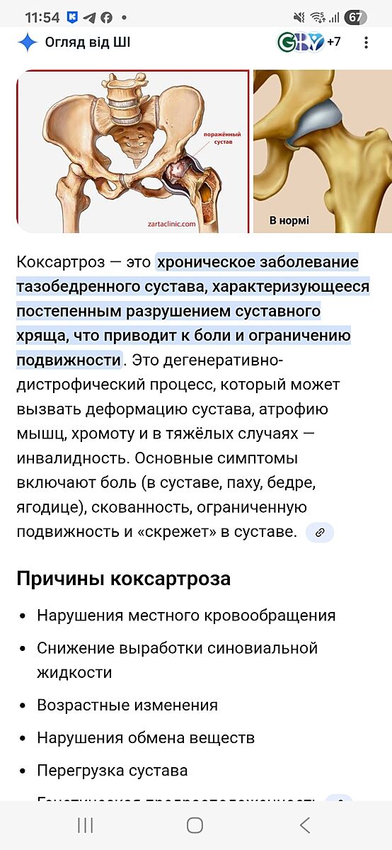 Краще до лікаря. В мого чоловіка такі самі симптоми. На мрт -коксартроз, а лікар каже - спина, полежіть на валіку 🤷♀️