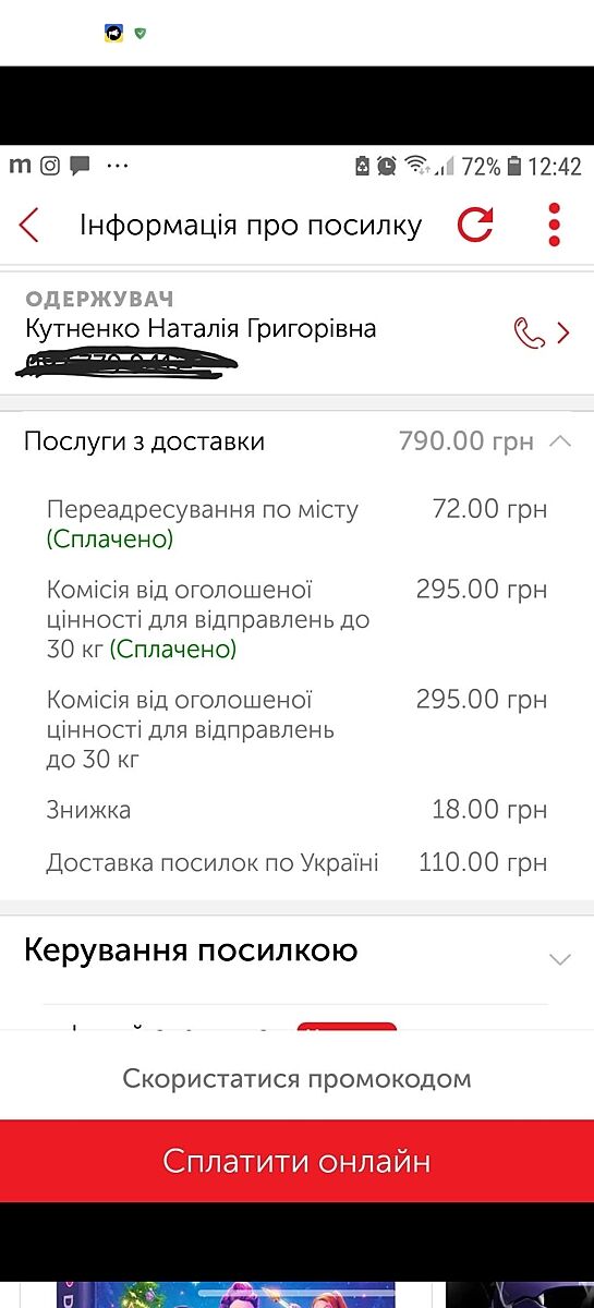 790 грн за доставку, да еще и с двойной комиссией, - это, конечно, лютейший пзц.