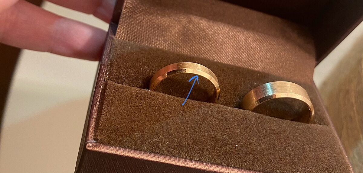 Вот я думаю, а мужское кольцо тоже сделано из такого качества? Просить ли переделывать оба кольца? Делали же наверное из одного материала