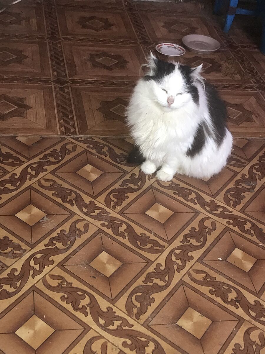 Она прибилась ко мне год назад, видимо тоже кто-то выкинул, я не знаю стилизована ли она, но за год котят не принесла на удивление