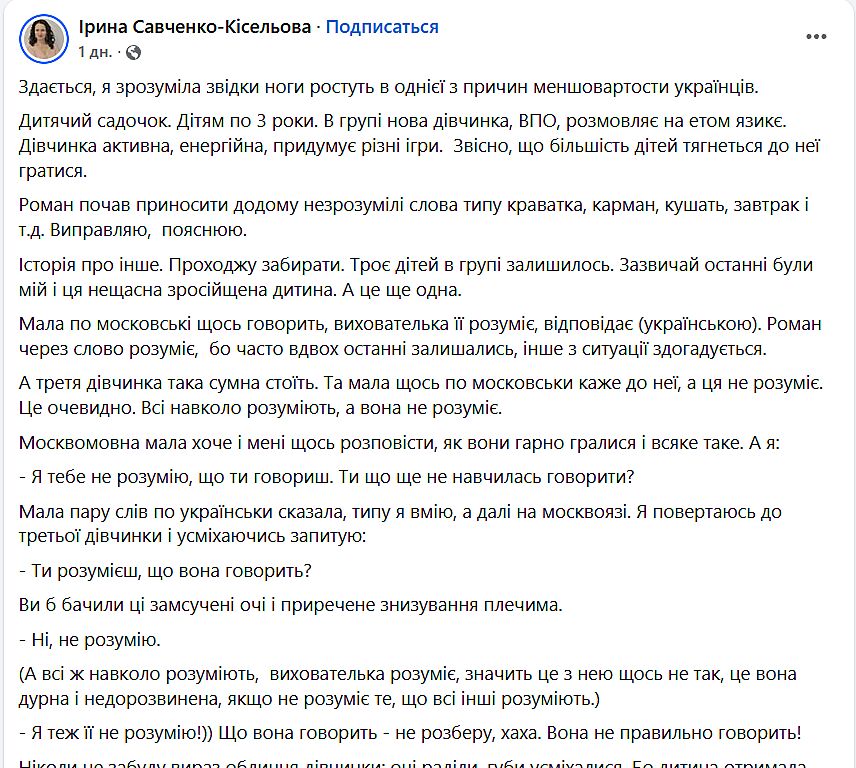 Она поняла откуда у украинцев комплекс меншовартости