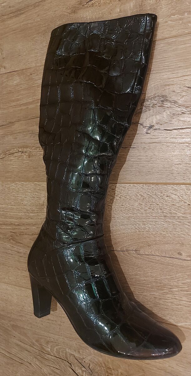 У меня есть такие)) только цвета такого, хамелеонисто-бутылочнозелёного с фиолетом))) и каблук чуть ниже. Им лет 12 уже. Не ношу, выбросить жалко, прикольные были в своё время.