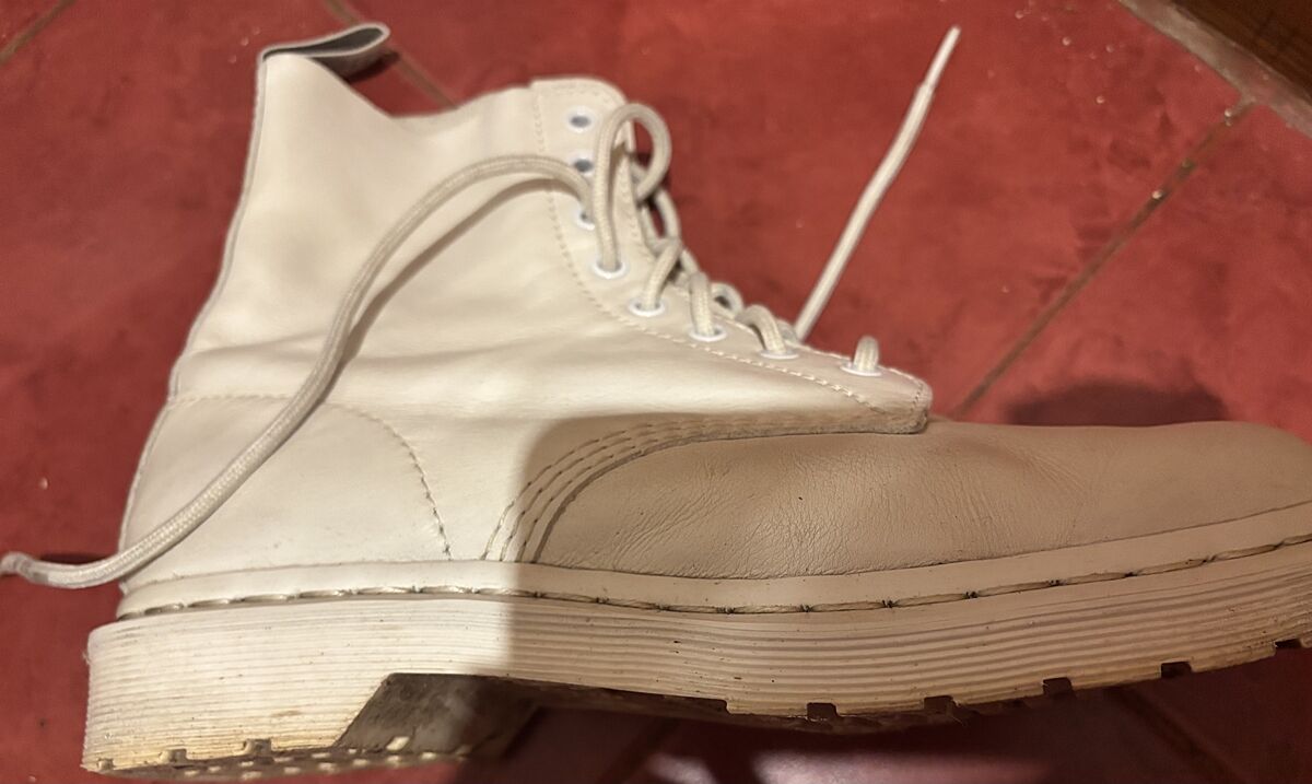 Відмити, відбілити подошву, здати пофарбувати, замінити шнурки на нові.