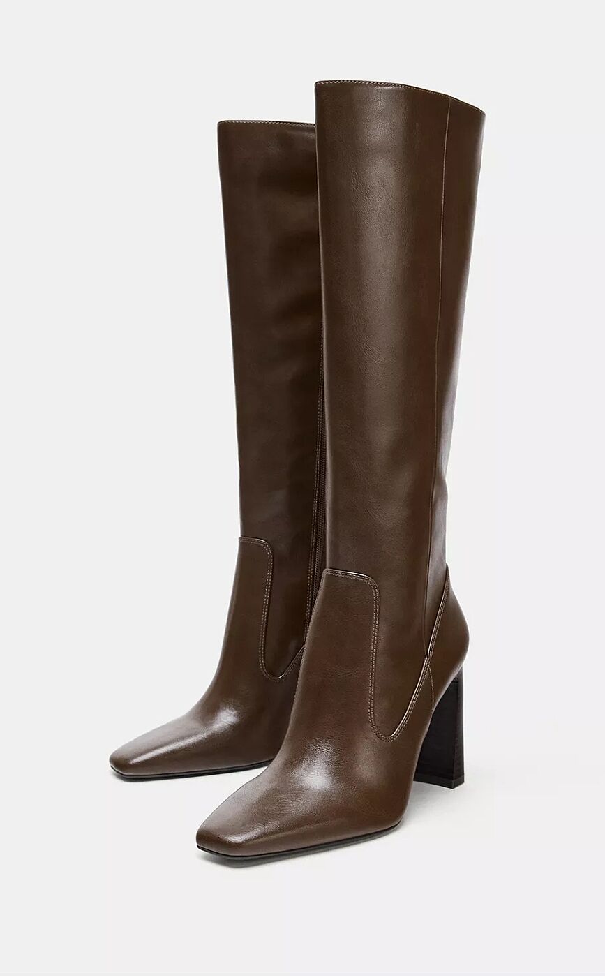 Сейчас как раз в ходу длина ± до колена, а на каблуках такой обуви много и чуть-чуть