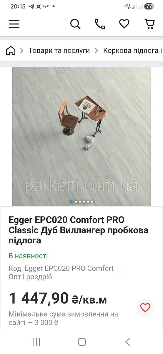 В мене пробка не з дорогих, ламінат Еггер. Візуально мені подобається, тактильно він значно приємніший ніж звичайний ламінат, тепліший але не настільки щоб розраховувати на комфорт на першому поверсі. І є недоліки, про які я прочитала перед покупкою цього покриття і була до них готова. Він дуже ніжний. Ми з чоловіком живемо удвох, інтенсівність експлуатації не велика, а підлога вся в тріщинах і пошкрябинах верхнього шару. Від меблів залишаються вмятини. Біля дивану з боку, де мій чоловік облаштував собі містечко, взагалі верхній шар зчовганий. Він там сидить перед компом, ламінат уграв. Думала що років хоча б на 10 його має хватити, але ні, він вже після 5років втратив свої естетичні якості. Але повторюсь що босими ногами по ньому приємно ходити. Якщо є діти, однозначно не пораджу. Ну може інший, дорощий, добре себе веде в експлуатації, не знаю. Я зараз спробую знайти точно як мій називається