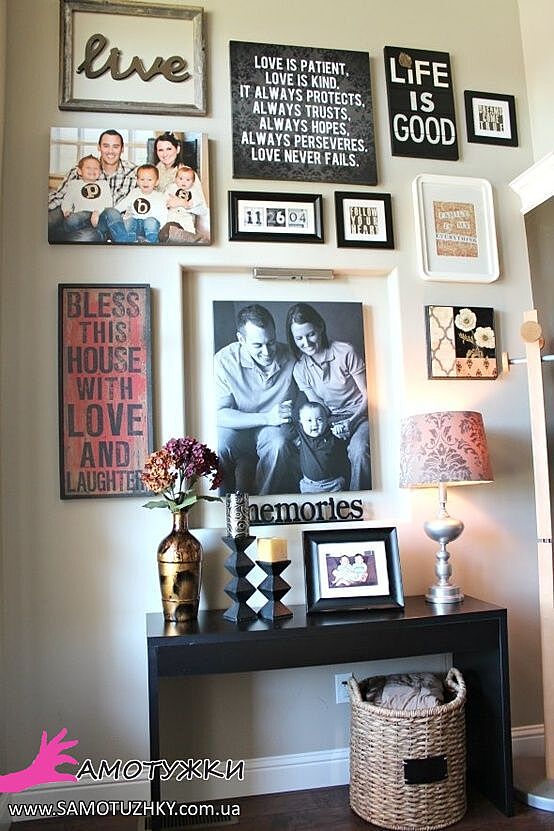 Вообще это считается мещанством и трошки колхозом, но я люблю фотографировать и у нас есть красивые фотографии, которые я очень люблю, меня это радует и я все равно хочу. На мой взгляд это по домашнему и с историей семьи. Чем повесить какой то там стильный постер. Вот так хочу