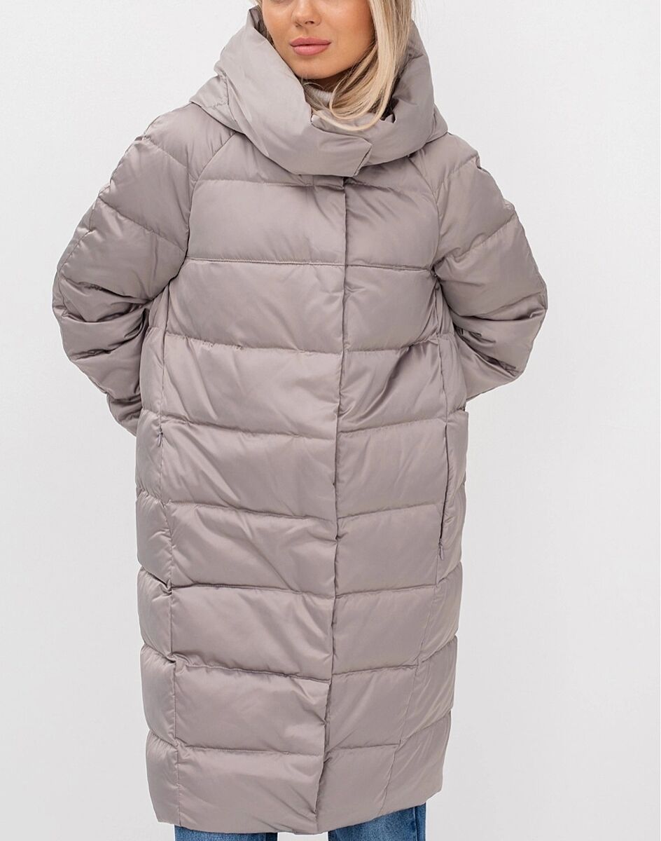 Має світлий колір трохи як з перламутровим відливом, наповнювач пух/перо. Довижина до коліна